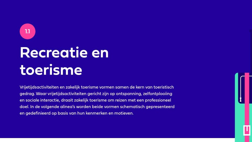 Vrijetijdsactiviteiten en zakelijk toerisme vormen samen de kern van toeristisch gedrag. Waar vrijetijdsactiviteiten gericht zijn op ontspanning, zelfontplooiing en sociale interactie, draait zakelijk toerisme om reizen met een professioneel doel. In de volgende alinea’s worden beide vormen schematisch gepresenteerd en gedefinieerd op basis van hun kenmerken en motieven.
